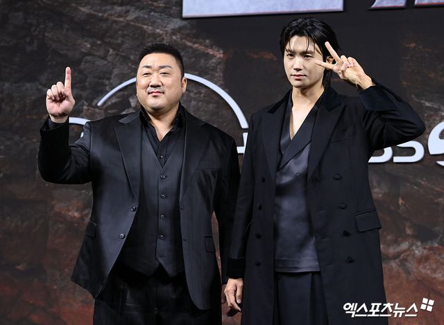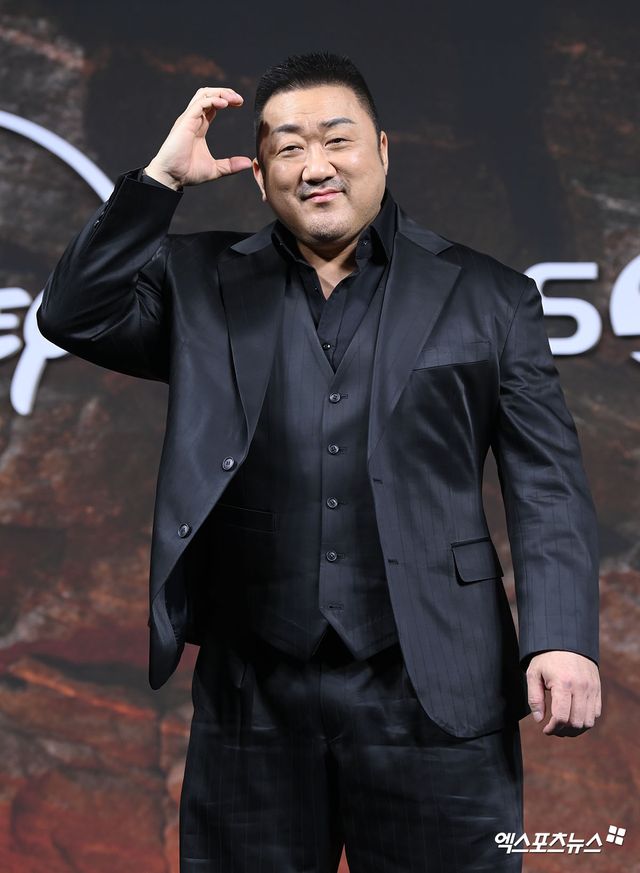 마동석은 "일단 인국이랑 같이 해서 좋다"면서 "영화나 드라마 중 '어떤 작품을 먼저 해야지' 이런 생각은 없다. 좋은 작품이 있으면 하는 건데, 타이밍이 그렇게 됐다. 다행히 TV와 디즈니+로 시청자들을 만나게 돼서 감사하게 생각한다"고 말문을 열었다.