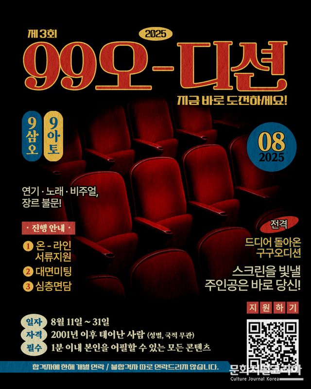 ‘제3회 99오디션’은 오는 31일까지 온라인 서류 접수가 진행되며, 이후 대면 미팅과 심층 면담을 통해 최종 합격자가 결정된다. 2001년 이후 출생자라면 누구나 지원 가능하며, 연기, 노래, 비주얼 등 장르 불문한 모든 분야로 참여할 수 있다.