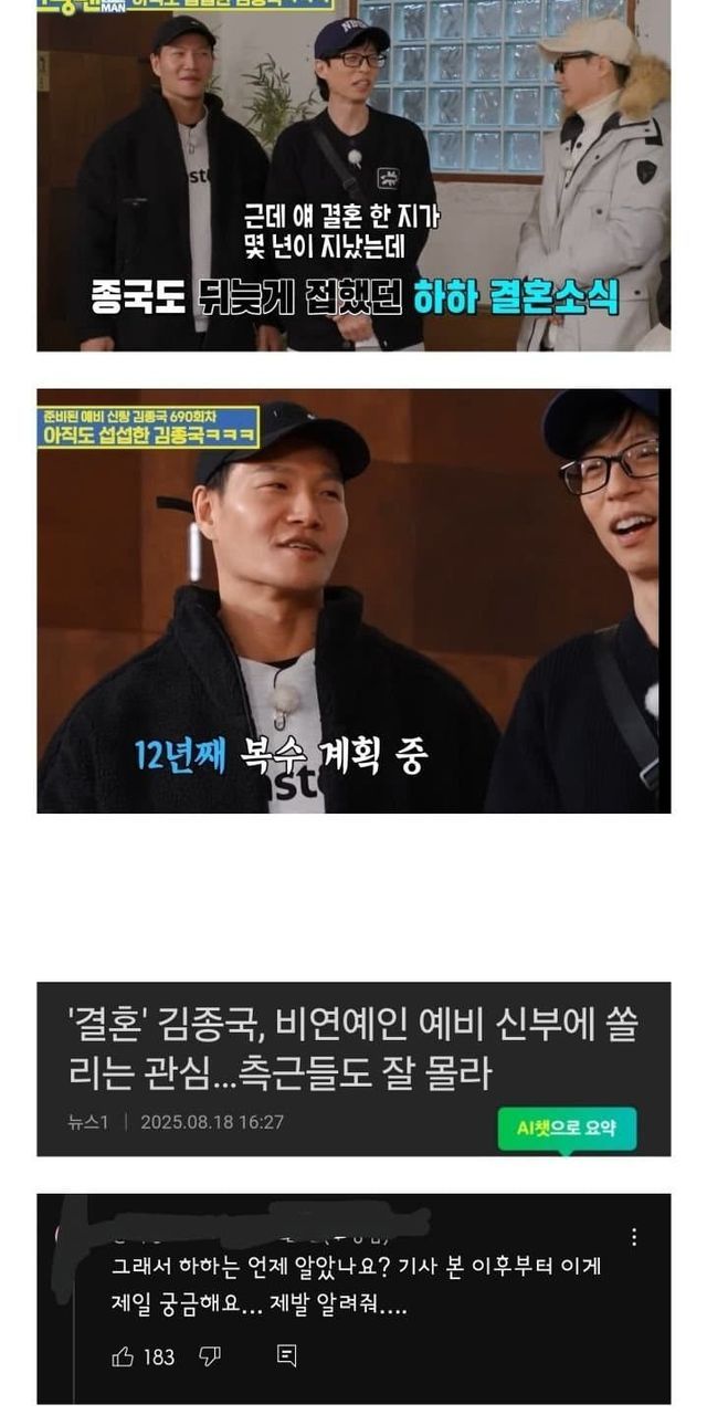 김종국 결혼 소식에 런닝맨 팬들이 가장 궁금해하는 것