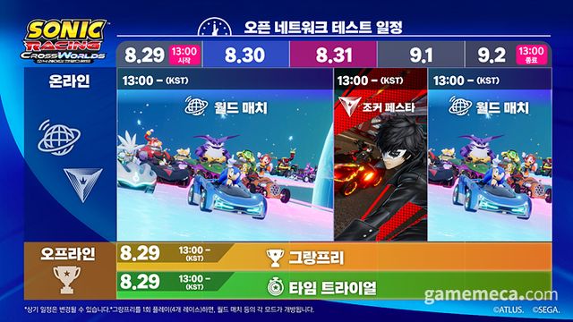 세가퍼블리싱코리아는 9월 25일 발매 예정인 '소닉 레이싱 크로스월드' 기간 한정 공개 네트워크 테스트를 한다.