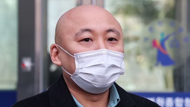 웹툰작가 주호민이 지난해 2월 1일 경기 수원시 영통구 수원지방법원에서 취재진의 질문에 답하고 있는 모습. / 뉴스1
