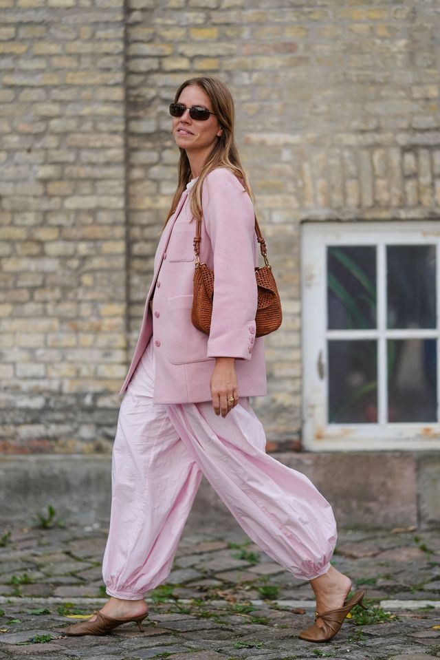 어두운 톤에 질렸다면 산뜻한 파스텔 핑크 재킷에 도전해 보세요. 핑크에는 묵직한 가을 공기마저 달콤하게 만드는 힘이 있으니까요. 하의로는 풍성한 벌룬 팬츠를 매치해 볼륨감을 살리면 룩이 한층 입체적으로 살아나죠. 여기에 브라운 위빙 백과 슈즈까지 더하면 달달한 핑크 톤에 전체적으로 따뜻한 균형이 생깁니다.
