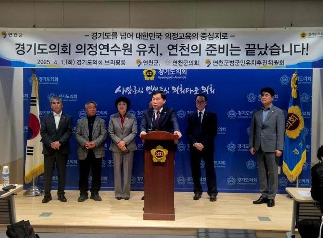 경기도의회는 의원 수 156명의 전국 최대 규모 광역의회로, 의원들의 전문성 강화와 정책 역량 제고를 위한 체계적 연수시설의 필요성이 꾸준히 제기돼 왔다. 이에 도의회는 연천군을 최종 부지로 확정하고, 연구용역을 시작으로 타당성 조사, 중앙투자심사, 공공건축 심의 등 절차를 차례로 밟고 있다. 향후 기본·실시설계와 건축 공사를 거쳐 2030년 7월 정식 개원을 목표로 하고 있다.