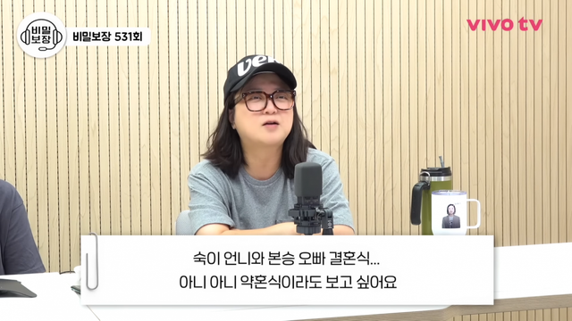 한 팬은 “숙 언니와 본승 오빠 결혼식… 아니 약혼식이라도 보고 싶다”라는 바람을 전했고, 이에 김숙은 “얘기하지 말고 (구본승에게) 관객으로 보러 오라고 한 다음 무대에서 바로 시작하면 어떻겠냐”며 ‘몰래 약혼식’ 콘셉트를 제안했다.