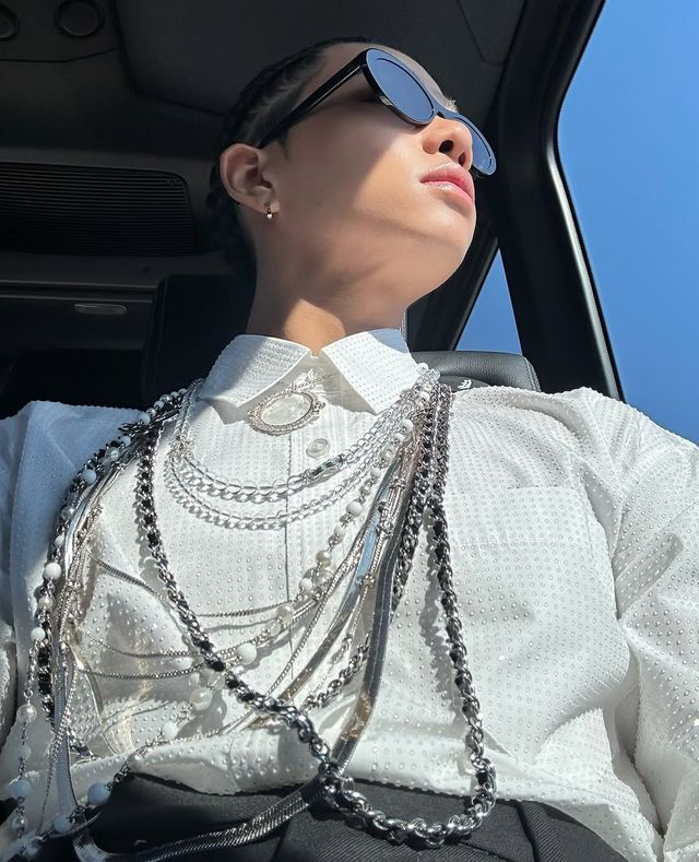 자유로운 성격으로 잘 알려진 타잔의 정체성을 시각적으로 대변해 주는 아이템 중 하나인 그릴즈와 컬러렌즈. 특히 그릴즈는 그간 블랙핑크와 일부 케이팝 스타들이 특정 무대와 뮤직비디오 등에서 선보인 적은 있지만 타잔처럼 애용하는 셀럽이 많지는 않았던 것이 사실. 장꾸미 가득한 웃음을 지을 때 드러나는 그릴즈로 매력 포인트를 추가한 타잔. 그의 그릴즈는 평소 대담하게 매치하는 볼드한 주얼리와 자연스러운 조화를 이루는가 하면 루즈한 새깅 팬츠 등의 스타일에 의외성과 예리한 감각을 더하는 역할을 한다.