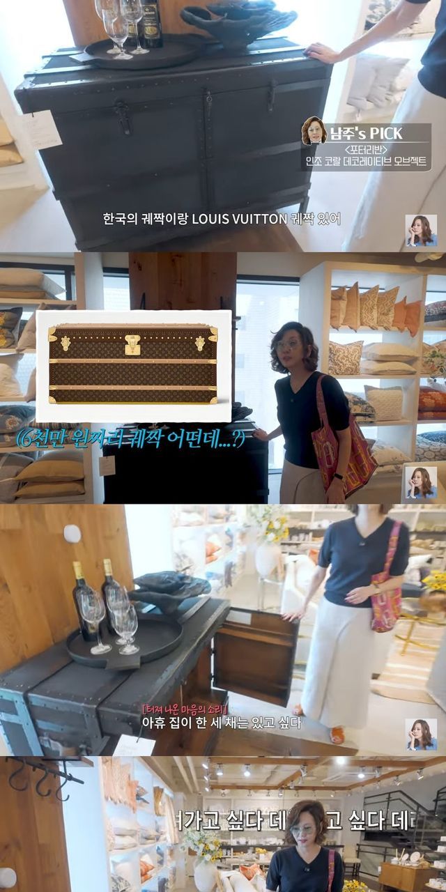 (엑스포츠뉴스 김보민 기자) 배우 김남주가 명품 브랜드 루이비통의 제품과 비슷한 캐비닛을 발견했다.