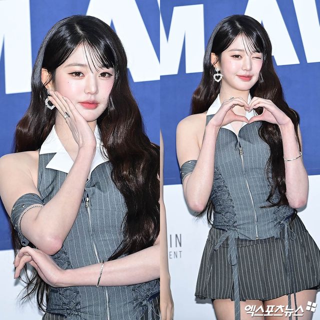 이날 행사에 참석한 아이브 장원영이 포토타임을 갖고 있다.