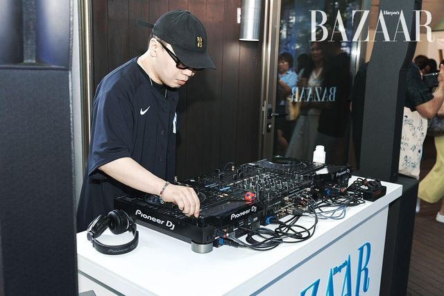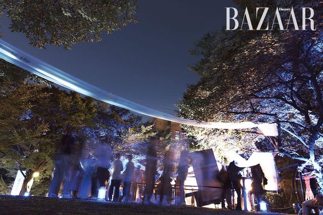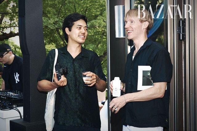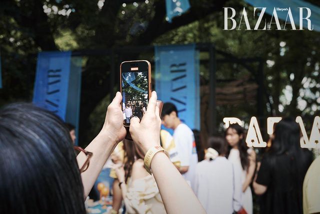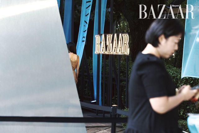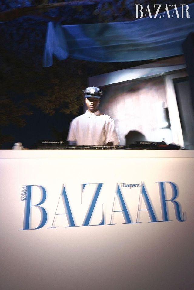 전시를 관람한 게스트들의 종착지는 성곡미술관의 시그너처 공간인 ‘조각 공원’이다. 〈하퍼스 바자〉 로고가 새겨진 블루 오간자 행잉이 길목마다 여름의 향기처럼 나풀거리며 관람객을 안내했다. 3년간 바자전 파티를 성공리에 개최하면서 입소문 난 한 가지가 있다. 바로 바자전이 케이터링 맛집이라는 것. 올해도 파티에 즐거움을 더하는 다양한 술과 음료, 여기에 함께 곁들이면 좋을 음식과 과일이 준비되었다. DJ 한현민, 보이비, 드레인케이는 감각적인 사운드로 여름 하늘을 수놓으며 파티 분위기를 고조시켰다. 해가 저물고 더위가 사그라진 조각 공원에는 파티를 즐기는 이들의 웃음소리가 가득했다. 사람들은 전시의 여운과 함께 각자의 이야기를 공유하고 서로 공감하며 공존했다. 예술과 음악과 술 그리고 사람들이 함께했던 그날, 세 번째 바자전의 빛나는 순간들을 지금 만나보시라.
