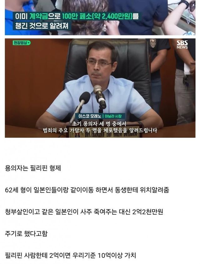 선수금으로 1만 페소 (24만원)을 받은 것으로 드러남