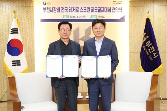 부천시는8월21일㈜국제파크골프와(회장김재용)‘부천시장배전국레저로스크린파크골프대회’개최를위한업무협약을체결했다.이번협약은대회의성공적인추진과지역스포츠문화발전을위해마련됐다.