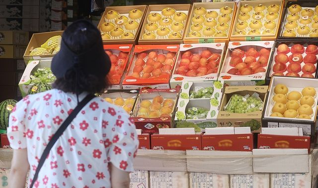 전통시장에서 과일을 고르는 시민 모습. 기사 이해를 돕기 위한 자료 사진입니다. 해당 기사 내용과 직접적인 관련은 없습니다. / 연합뉴스