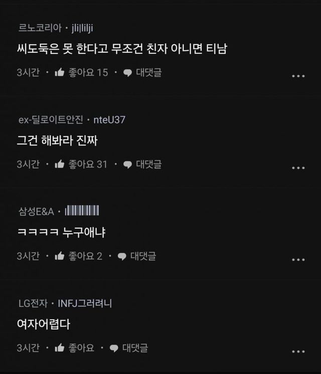 피발작하는 댓글들과 해보자는 댓글들