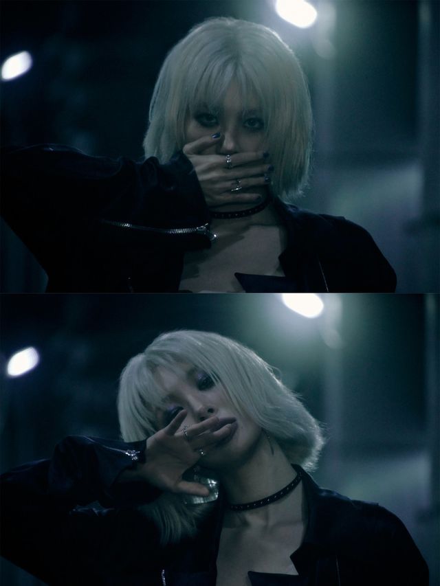 오직 선미만이 소화 가능한 치명적이고 시크한 분위기, 무심한 듯하지만 짙고 깊은 눈빛이 인상적. 영국 드라마 ‘스킨스’의 ‘EFFY’를 연상시키는 비주얼이었다. 특히 록 무드가 돋보이는 스타일링과 스모키 메이크업, 가죽 재킷과 가터벨트를 매치한 모습은 드라마 속 한 장면을 떠오르게 했다.