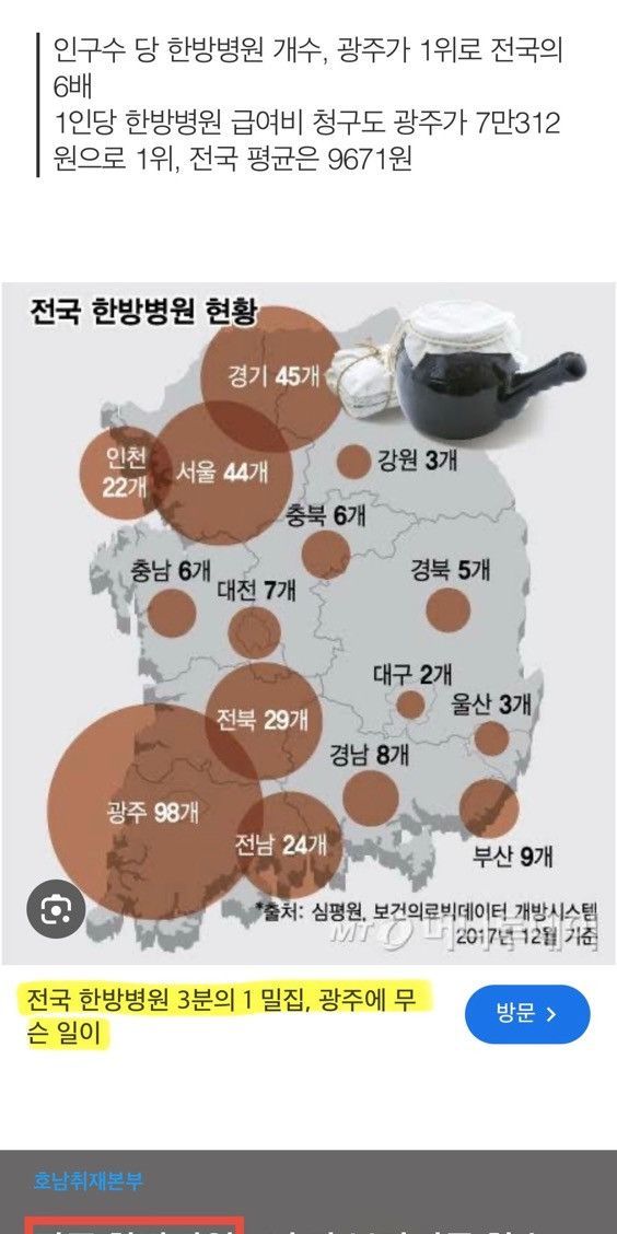 인구수 10배 차이나는데 ‘한방병원’은 광주에 더 많음 ㅋㅋ