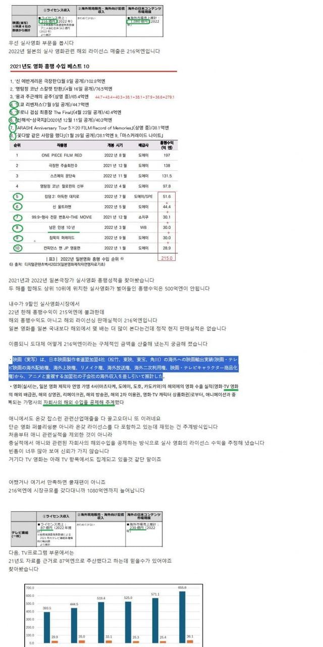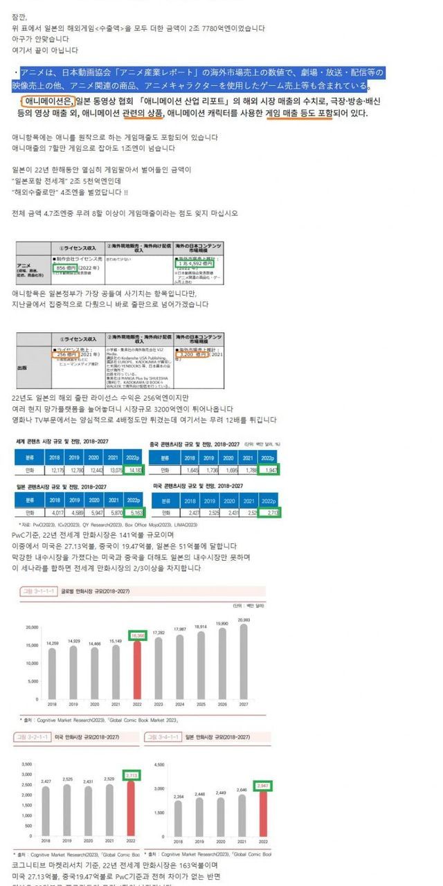 이후로도 일본 IP 컨텐츠 산업의 규모나 해외인기에 대한 글이 올라오면