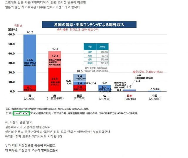 기사에 따르면 22년 기준 일본 문화컨텐츠의 해외수출액은 무려 4.7조엔,