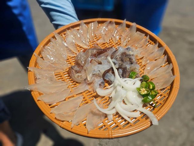오징어 난전에서 2마리에 5만 6000원 주고 구매한 오징어 회. / 속초시청 자유게시판