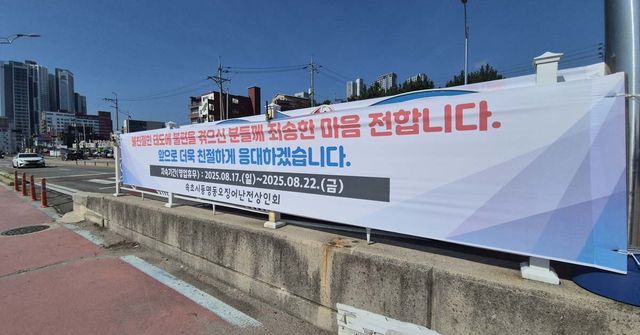 속초시동명동오징어난전상인회는 ‘불친절한 태도에 불편을 겪으신 분들께 죄송한 마음 전합니다. 앞으로 더욱 친절하게 응대하겠습니다’라고 적은 플래카드를 내걸었다.