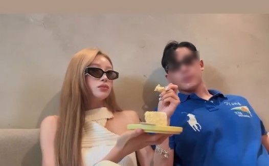 사진에는 최준희가 남자친구와 나란히 앉아 케이크를 나눠 먹는 모습이 담겼다.