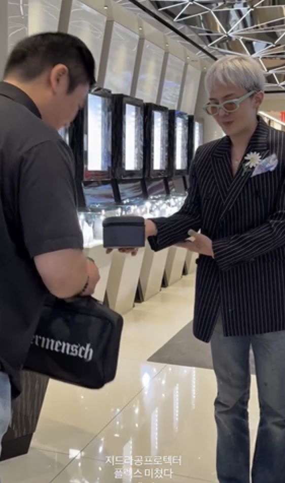공개된 동영상 속 지드래곤은 스위스 하이엔드 워치 J브랜드 숍에서 경호원들에게 시계를 직접 선물하는 모습. 경호원들의 이름을 호명하면서 고가 시계를 전한 지드래곤은 "저를 보호해주신다"며 감사함을 드러냈다.