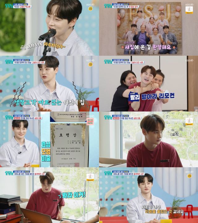 한편, 박서진은 새집에서 새 출발을 하는 기념으로 부모님께 운동화를 선물한 것은 물론 그동안 모아둔 수많은 상장을 최초로 공개하며 훈훈함을 자아냈다. 초등학교 5학년 때 참가했던 노래자랑을 시작으로 전국을 휩쓸며 상을 받았던 박서진은 과거 예심마다 함께하며 든든한 지원자가 되어줬던 셋째 형과의 추억을 풀어내 뭉클함을 안기기도 했다.