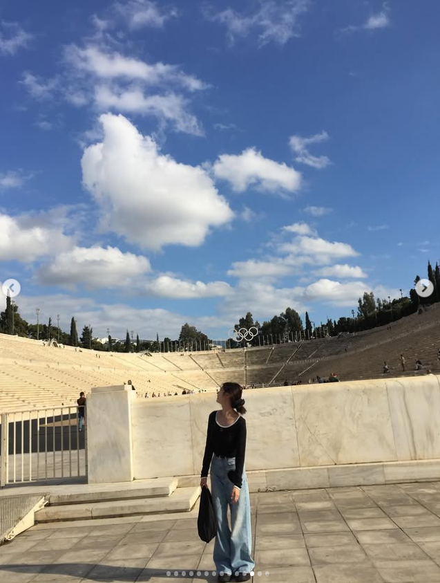 정소민은 자신의 인스타그램에 아테네의 파나티나이코 스타디움에서 찍은 사진을 공개했다.