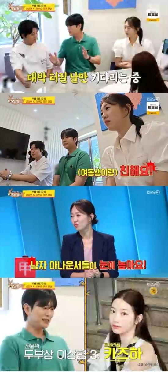 김종현은 성지인이 이상형에 대해 묻자 "마르고 키는 상관 없다"며 아이유 스타일을 얘기했다. 엄지인은 "남자 아나운서들이 눈이 높다"고 했다.