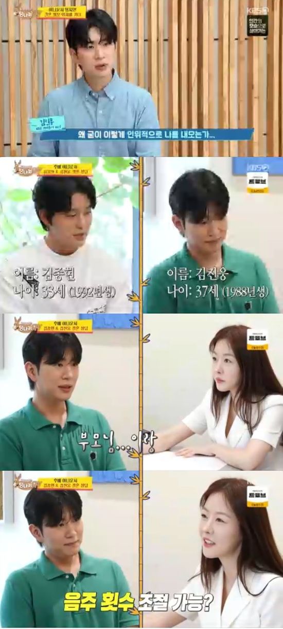 김진웅은 성지인이 주량을 묻자 주 1, 2회 정도 마시는데 한 번 마실 때 많이 마신다고 털어놨다. 엄지인은 옆에서 김진웅이 필름이 끊길 정도로 마신다고 폭로했다.