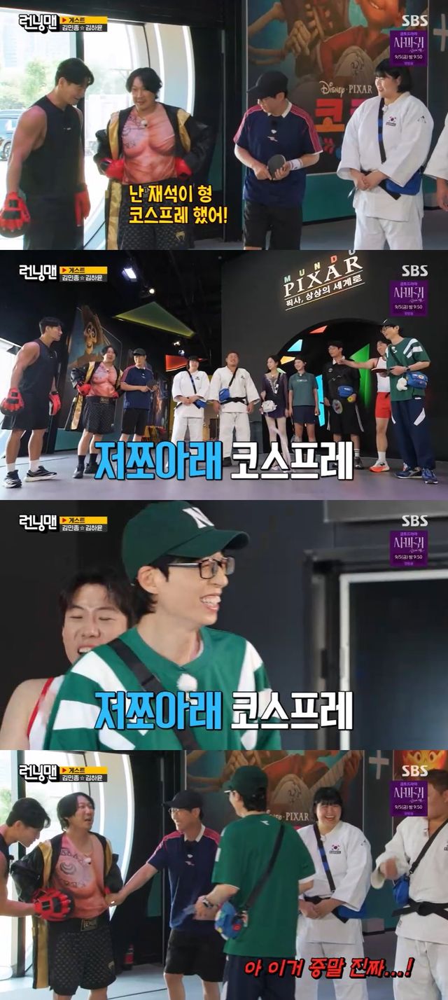 이날 오프닝에서는 멤버들이 모두 운동선수의 복장을 입고 등장해 눈길을 끌었다. 특히 김종국은 하하와 함께 복싱 선수 연기를 선보였다.