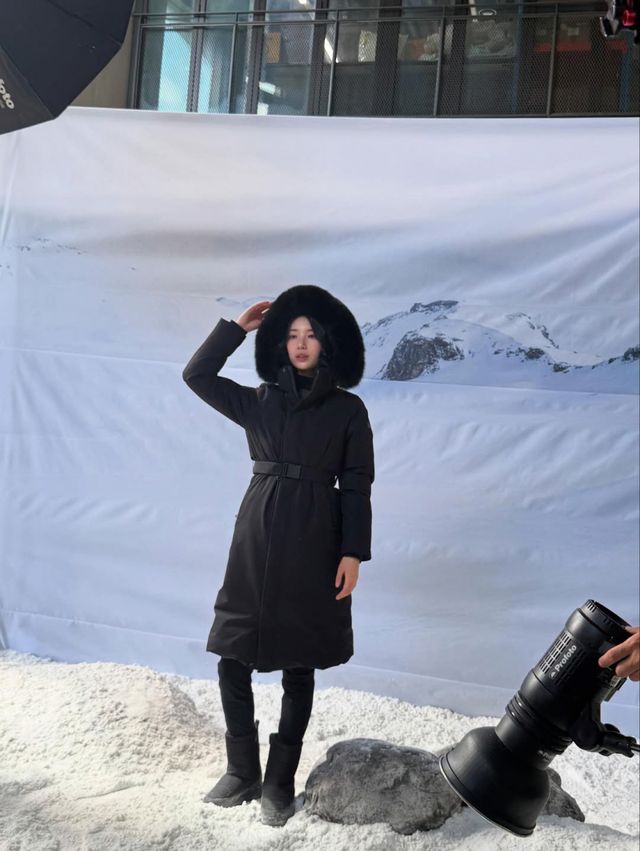 수지는 24일 자신의 SNS를 통해 아웃도어 브랜드 화보 촬영 중인 모습을 공개했다.