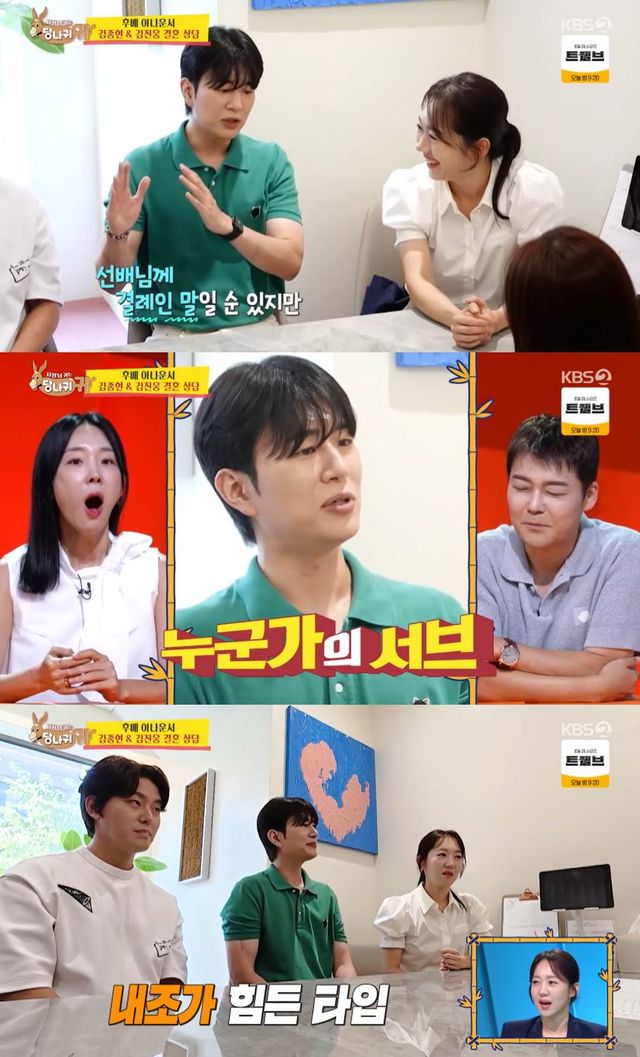 앞서 이날 KBS 2TV '사장님 귀는 당나귀 귀'에서는 김진웅이 도경완이 장윤정과 결혼한 것을 두고 "선배님한테 결례인 말일 수도 있지만 누군가의 서브로는 못 산다"고 말했다.