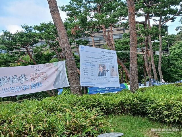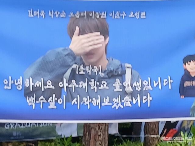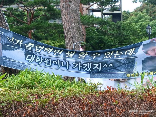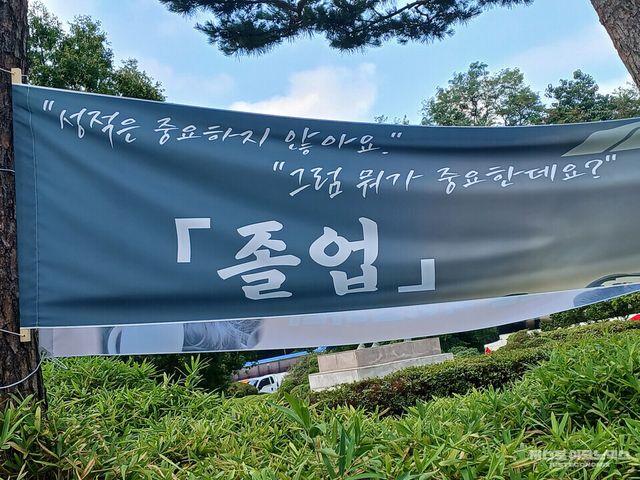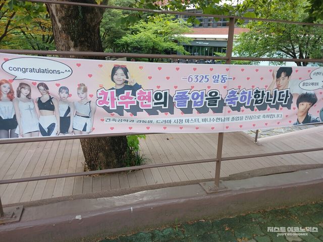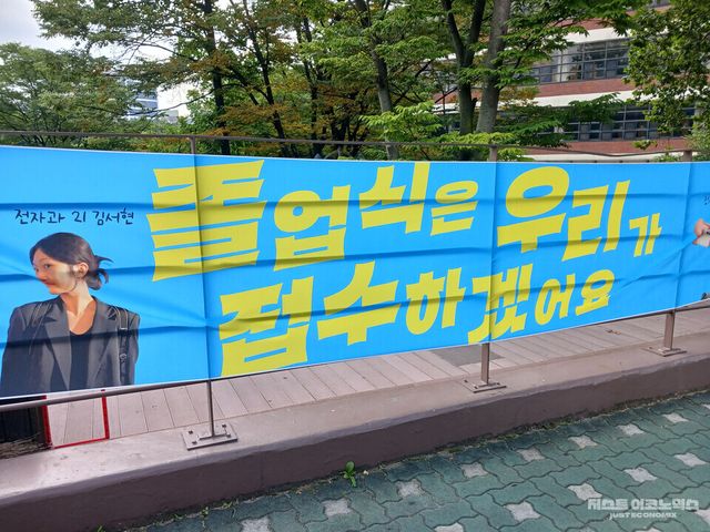인스타그램 등 SNS에 공유하다 못해 심지어 교정에 플래카드까지 내걸고. 자기들만의 언어로 졸업을 표현하려는 듯한 풍경, 아무튼 재밌어요~!!!!!!!