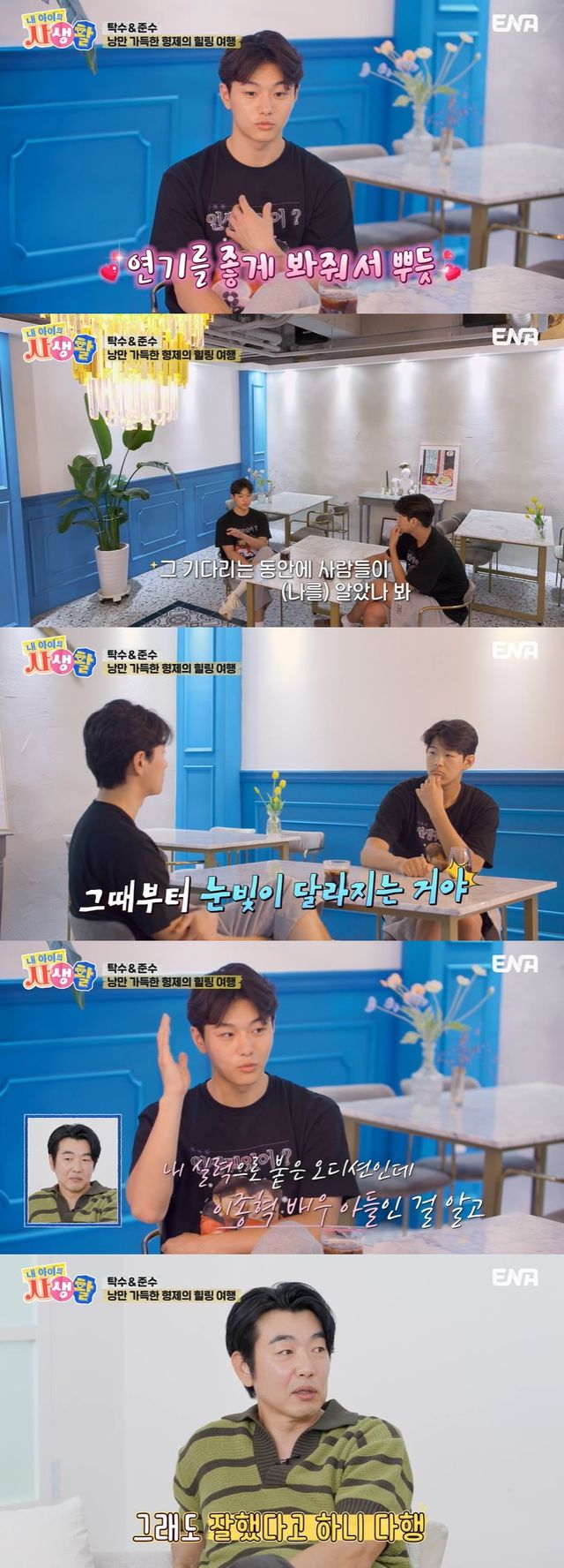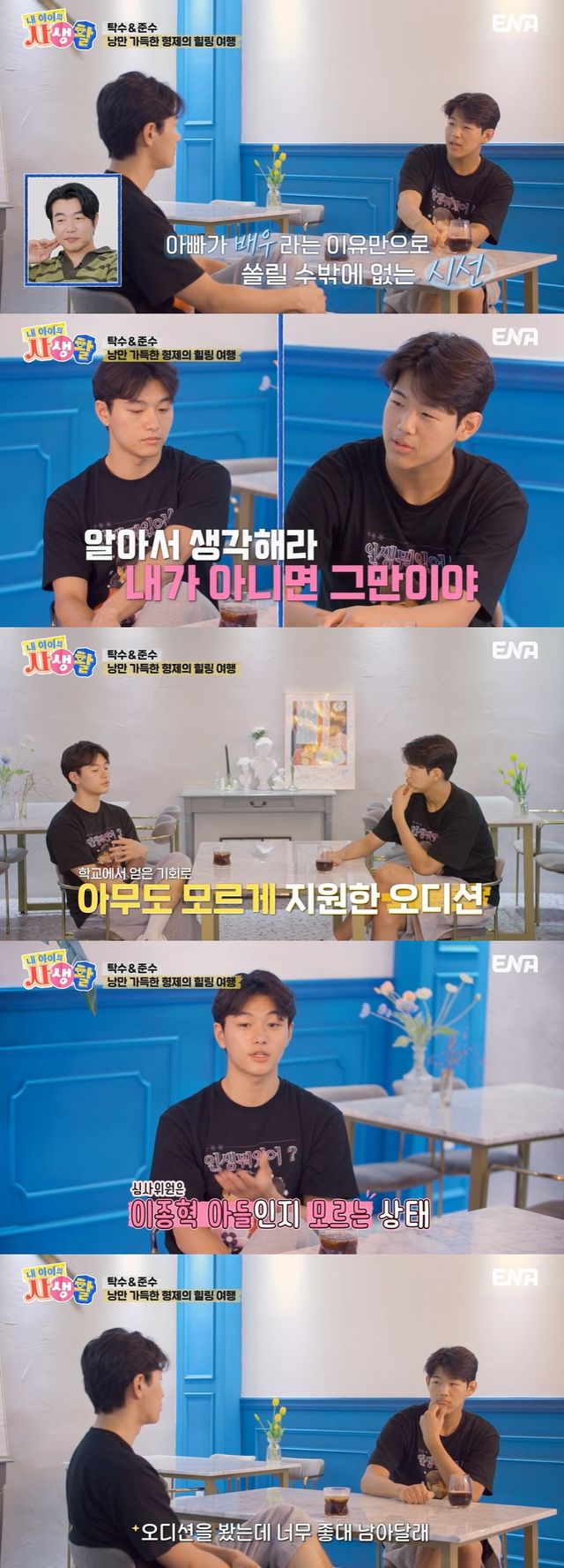 이어 탁수는 "너는 우리가 배우의 아들들이잖아. 사람들이 바라보는 시선이 있지 않냐. 너는 그런 거에 대해 스트레스 받거나 고민되는 게 없었냐"라고 물었다.