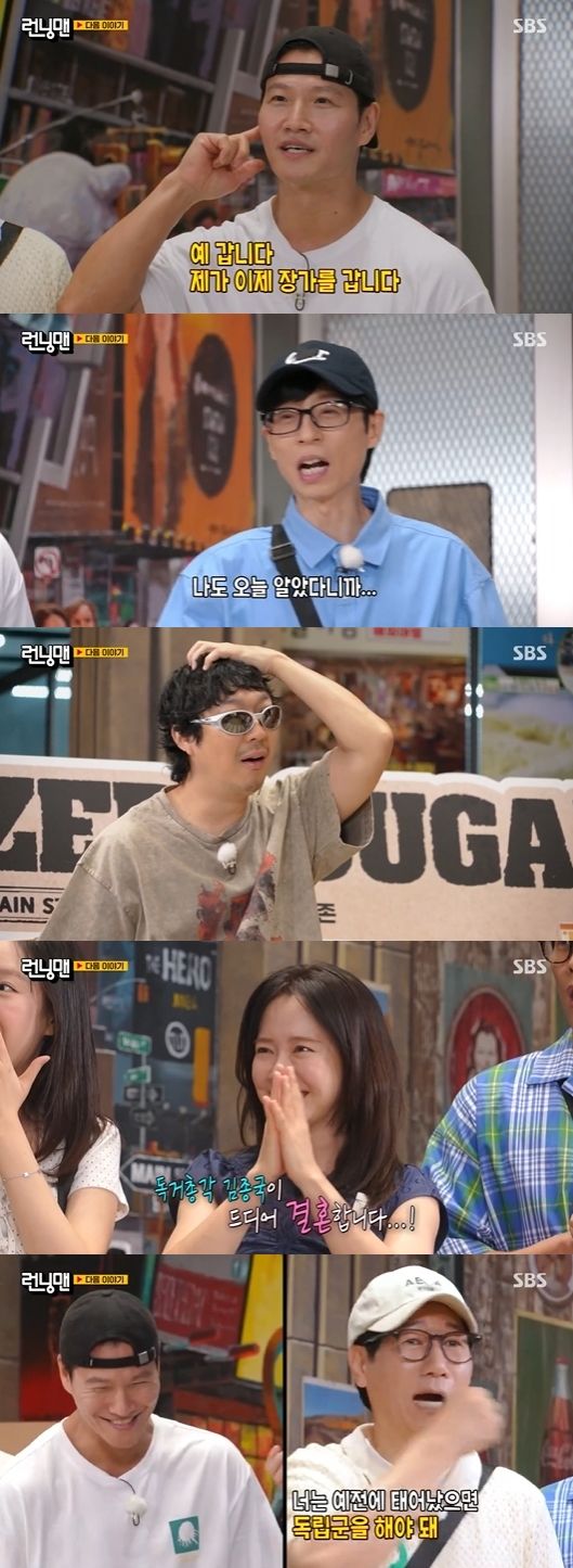멤버들이 한자리에 모인 뒤에도 혼란은 계속됐다. 지석진은 “아직도 안 믿겨지는데 진짜야?”라며 되물었고, 결국 김종국은 “네. 제가 이제 장가를 갑니다. 열심히 잘 살겠습니다”라고 공식적으로 결혼을 발표했다. 유재석은 “나도 오늘 알았다니까”라며, 김종국이 기사화된 당일 아침에야 멤버들에게 소식을 전했다고 밝혀 모두를 놀라게 했다.