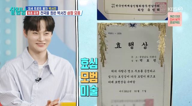 박서진은 새집에서 새 출발을 하는 기념으로 부모님께 운동화를 선물한 것은 물론 그동안 모아둔 수많은 상장을 최초로 공개하며 훈훈함을 자아냈다. 초등학교 5학년 때 참가했던 노래자랑을 시작으로 전국을 휩쓸며 상을 받았던 박서진은 과거 예심마다 함께하며 든든한 지원자가 되어줬던 셋째 형과의 추억을 풀어내 뭉클함을 안기기도 했다.