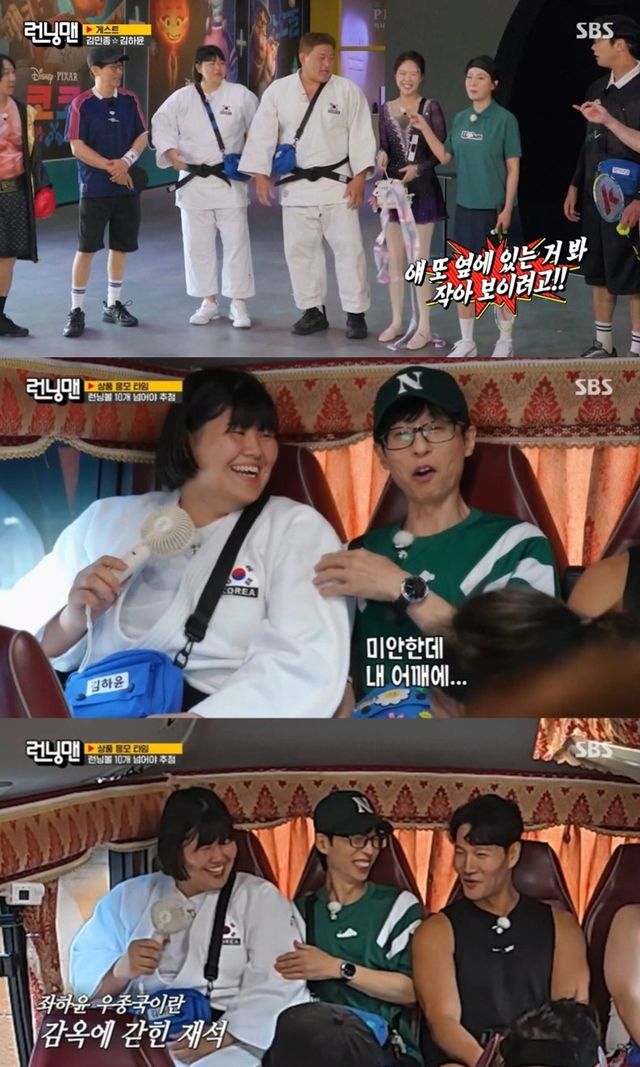 이날 방송은 '런닝체대 상품대첩'으로 꾸며져 멤버들은 마음만은 체육인으로 분해 등장했다. 특히, 양세찬과 지예은은 체조부로 등장해 각각 양악선과 짭연재 코스프레로 웃음을 선사했고 유재석은 "우리는 그냥 주민센터 같다"고 덧붙였다. 이날 게스트로는 세계를 제패하고 다시 돌아온 '유도 국가대표' 김민종, 김하윤 선수가 출연해 반가움을 자아냈다.