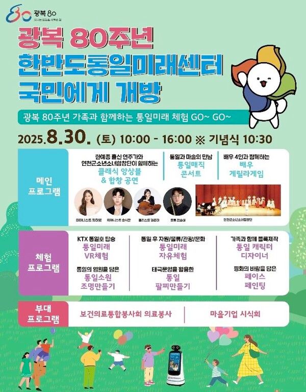 통일부 국립통일교육원 한반도통일미래센터(미래센터)는 오는 30일 '광복 80주년 기념, 대국민 개방행사'를 개최한다고 25일 밝혔다.