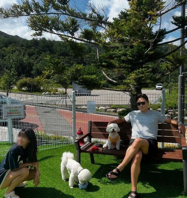 공개한 사진에는 진태현이 양딸과 함께 반려견 두 마리와 시간을 보내는 모습이 담겼다. 벤치에 앉아 선글라스를 낀 채 여유로운 표정을 짓는 진태현 옆에는 강아지가 자리하고 있고, 양딸은 또 다른 강아지와 함께 즐거운 한때를 보내고 있어 눈길을 끈다.