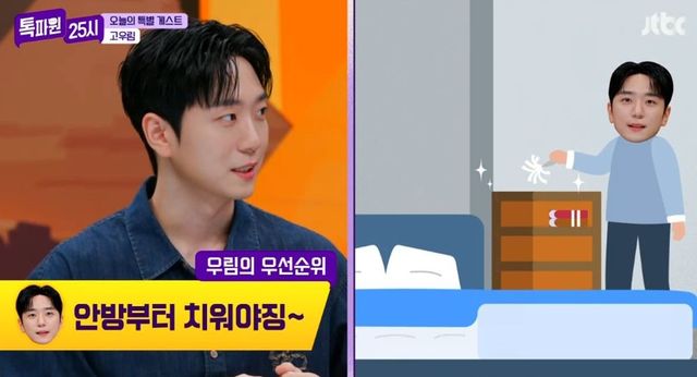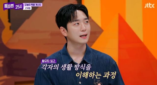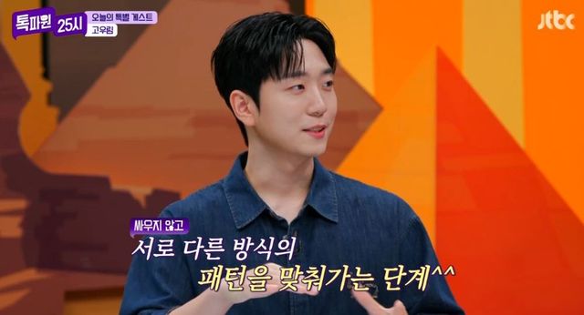 부부싸움도 할까. 고우림은 “우리 부부는 아직 싸운 적이 없다”며 “부부 사이에 사소한, 삶의 패턴을 맞춰가는 과정은 있다. 이를 테면 집에 손님이 온다고 치면 아내는 보이는 곳 위주로 청소를 하려하고 나는 안방부터 먼저 청소를 하려는 거다. 서로 우선순위가 다르다는 걸 배워가고 있다”라고 고백했다.