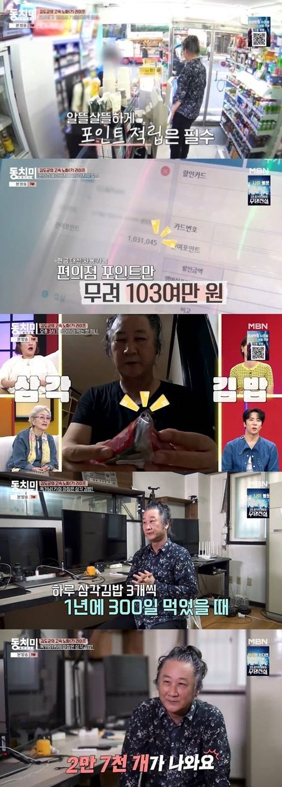 편의점을 직접 찾은 김도균은 다음 날 먹을 삼각김밥과 도시락을 구매하면서 포인트를 적립했다.