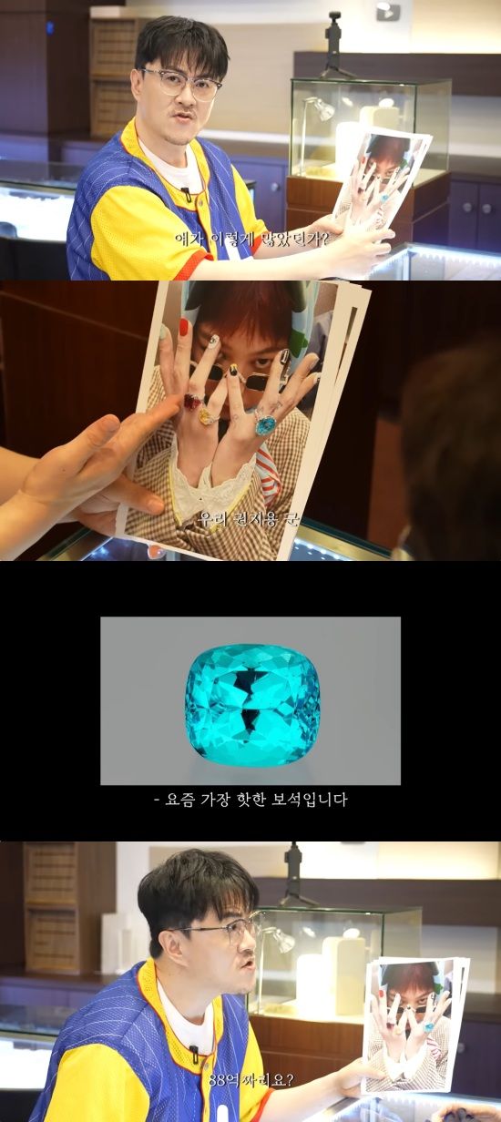 이에 딜러는 "다 실제 있는 보석들"이라면서 지드래곤이 왼손에 착용한 반지에 박힌 보석이 최근 핫한 '파라이바'라고 소개했다. 그러면서 "88억원으로 되어있는데, 홍콩인한테 팔렸다"고 덧붙여 데프콘을 놀라게 했다.