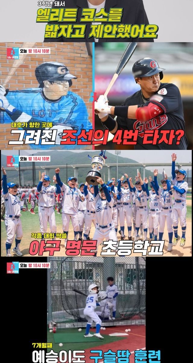 아들 예승이도 야구에 빠져 있다고. 이대호는 "지고 오면 울고 승부욕도 있어서 빨리 야구를 시켜야겠다고 했다. 제가 (아들이) 3학년이 되고 엘리트 코스를 밟자고 제안했다"고 전했다.