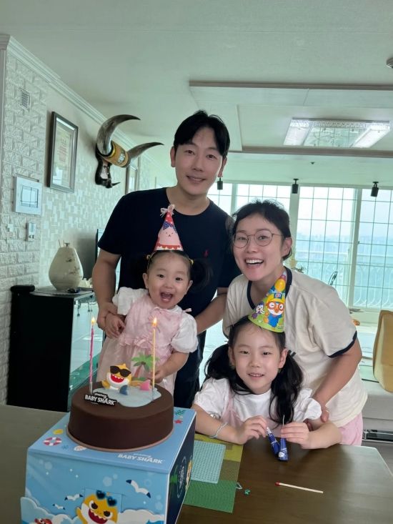 박슬기는 25일 자신의 개인 채널에 "하튼간 네버엔딩 생일잔치. 센스 터지는 울 시아부지 나랑 신랑 생일이지만 애들 취저 케이크 세팅에 백숙도 뚝딱 만들어주시는 만능 할아버지"라는 글과 함께 남편, 두 딸과 함께한 생일잔치 사진을 게재했다.