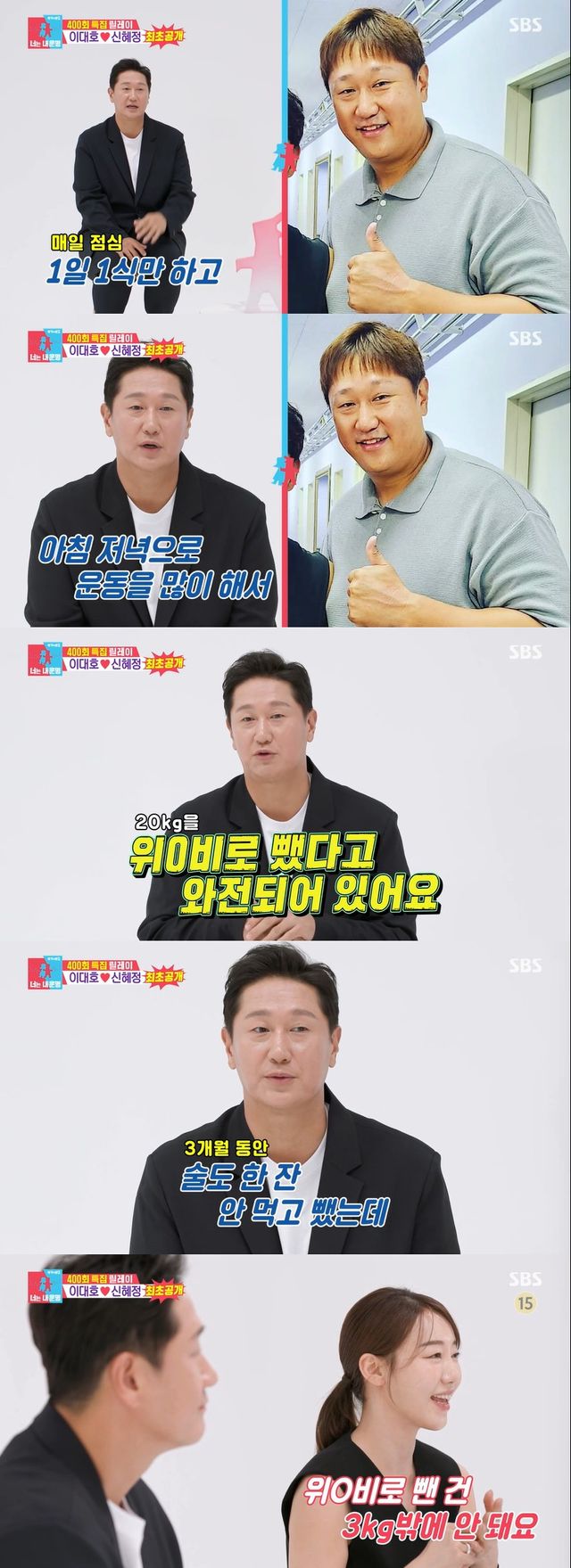하지만 이대호는 다이어트에 관해 억울한 점이 있다고. 그는 "20kg을 빼고 최근에는 위고비를 시작했다. 근데 방송이 와전되어 있는게, 위고비로 뺐다고 나와 있다. 3개월 동안 1일 1식하고 술도 한 잔 안 먹고 뺐는데"라며 속상한 마음을 토로했다.