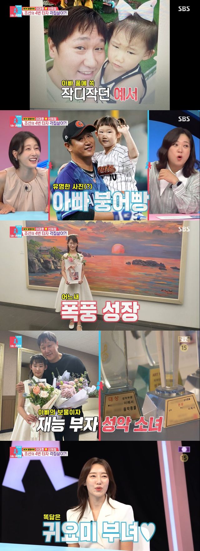 앞서 예서는 이대호 붕어빵으로 큰 화제가 되기도. 이에 이현이와 김숙은 두 사람이 여전히 똑 닮았을지 궁금증을 드러냈고, 뒤이어 여전히 아빠 판박이인 모습에 웃음을 터트렸다.