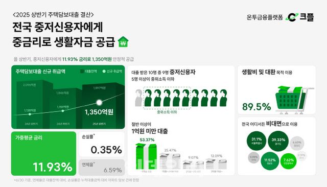 크플에 따르면 올해 상반기 주담대 전체 대출잔액은 1897억원으로 전년 동기(2096억) 대비 소폭 줄었지만, 신규 취급액은 18.3% 증가한 1350억 원으로 집계됐다. 기존 대출 상환이 이뤄지는 가운데 신규 공급이 확대된 결과로, 고액 대출 쏠림 없이 서민·중저신용자를 위한 생활금융 창구로 기능했음을 보여준다.