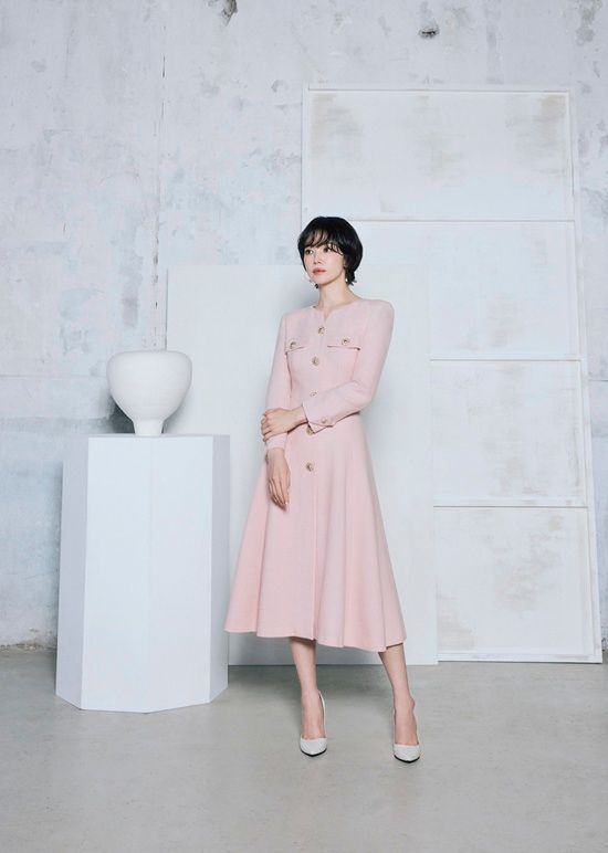 여기에 다채로운 컬러 믹스의 크롭 기장 트위드 자켓과 언발란스한 디테일의 니트탑으로 화사한 무드를 담아냈다. 또한 핑크 컬러의 플레어 원피스로 우아한 매력을 한층 강조하기도 했다.