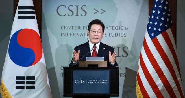 이 대통령은 25일(현지시간) 미국 워싱턴DC의 싱크탱크 전략국제문제연구소(CSIS)에서 한 연설에서 "안보 동맹과 경제 동맹에 더해, 저는 트럼프 대통령과 '국익 중심의 실용 동맹'의 새 지평을 열어가고자 한다"며 이같이 말했다.