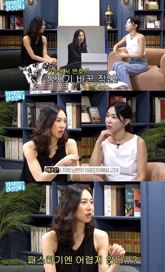 그러면서 "3년 학생으로 지내고 졸업 후에 변호사 시험을 준비한다. 변호사 시험이 공부하긴 어려운데 패스하긴 어렵지 않다. 합격률이 엄청 낮지 않다"고 변호사가 되기까지의 과정을 언급한 뒤 "어쨌든 어렸을 때 우리나라에서 많이 사랑받지 않았나. 그걸 두고 정체성이 바뀐다는 게 제일 어려웠던 것 같다"고 털어놓았다.