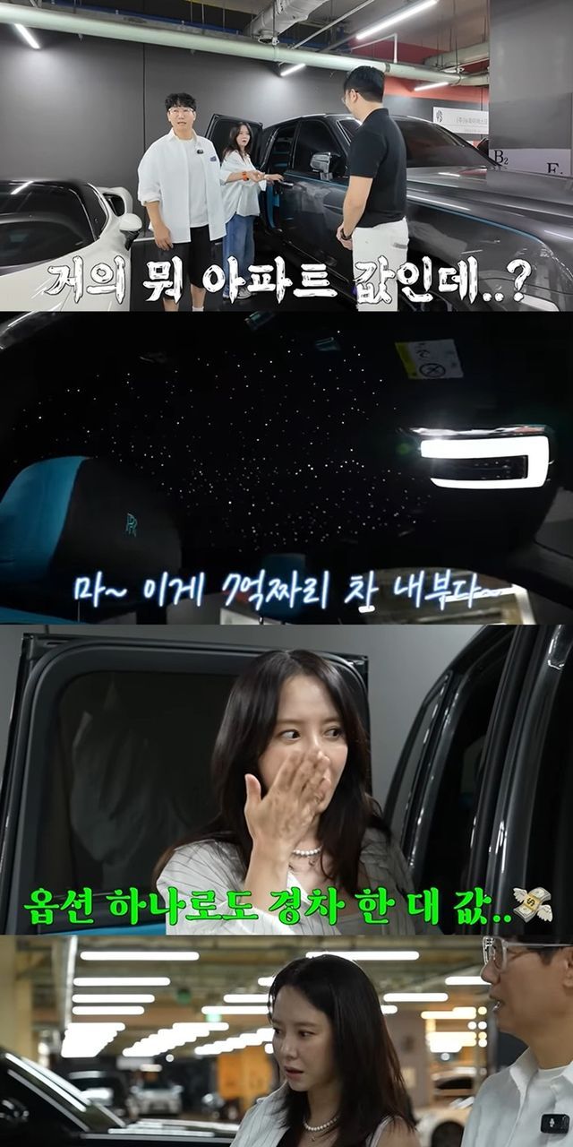 시작부터 7억이 넘는 R사의 차 구경을 시작한 지석진은 "거의 아파트 값인데"라며 감탄했고, 송지효는 "7억짜리 차 내부는 어떤가 보자. 밤하늘이 있다. 차 하늘에 별이 떴다"며 2천만 원이 넘는 내부 옵션에 감탄을 표했다.